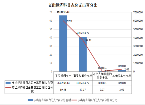 工资福利支出为6635994.13元,占支出总额的59.93%,比去年同期增加1683976.57元,增长34.01%。主要是我局按照2018年政府收支分类科目调整内容,将购房补贴、休假包干记入工资福利支出,同时2018年社会保险缴费(含上年结转的资金102300元)和残疾人保障金支出都较上年有所增加;
